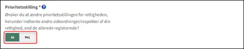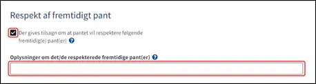 Hvis der skal tilføjes respekt af fremtidig pant, klikkes der på boxen så der vises et flueben. Herefter vises et tekstfelt, hvor oplysninger om det respekterede fremtidige pant kan indtastes.