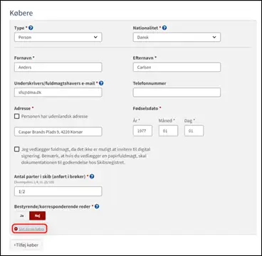 Trin 3: Ejerforhold for optagelse af skib: Tilføj køber