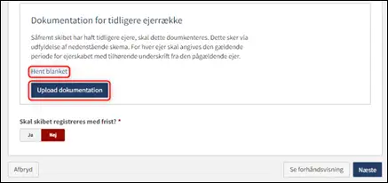 Trin 3: Ejerforhold for optagelse af skib: Upload dokumentation