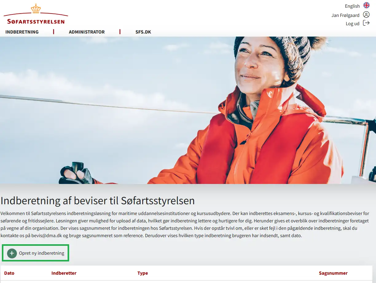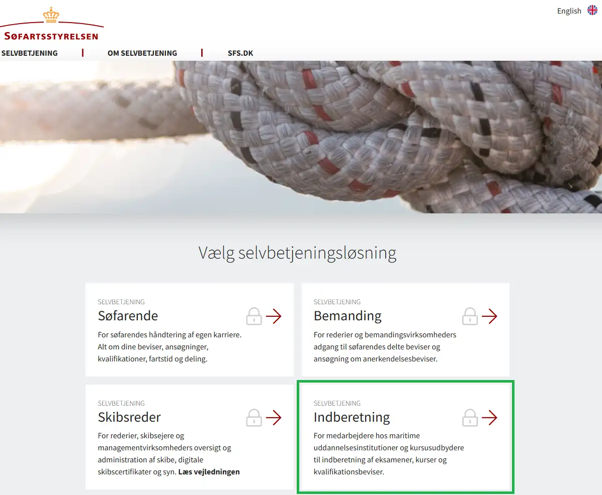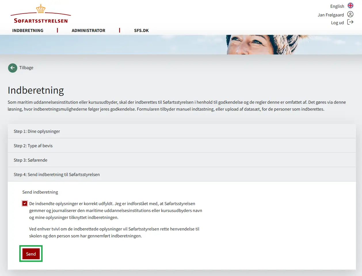 Indberetningsløsningen findes via dette link: https://services.dma.dk/