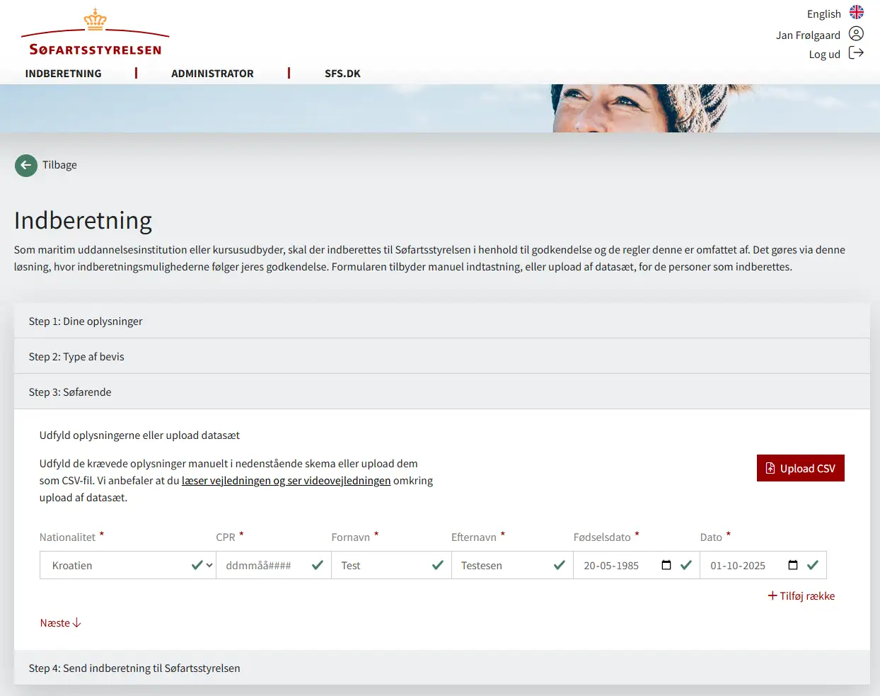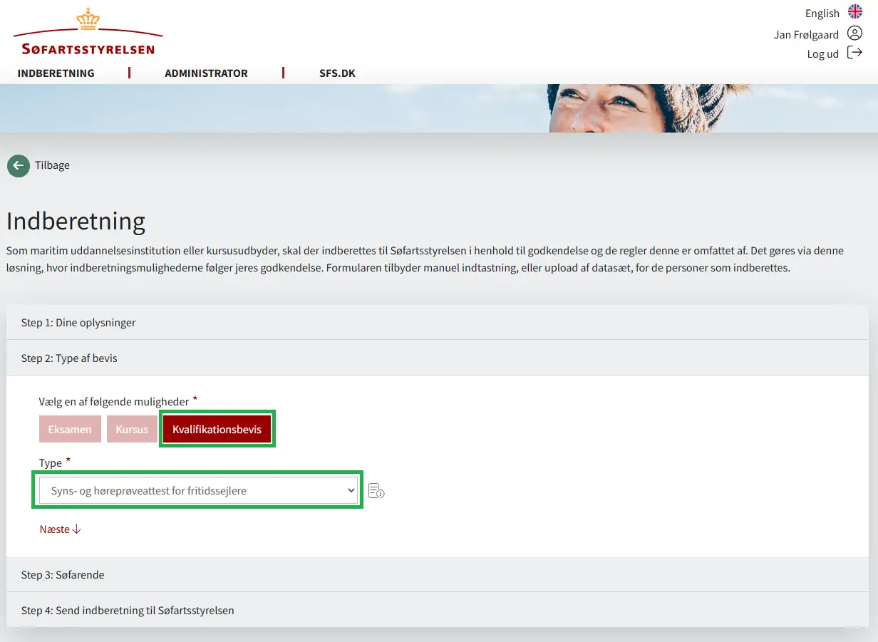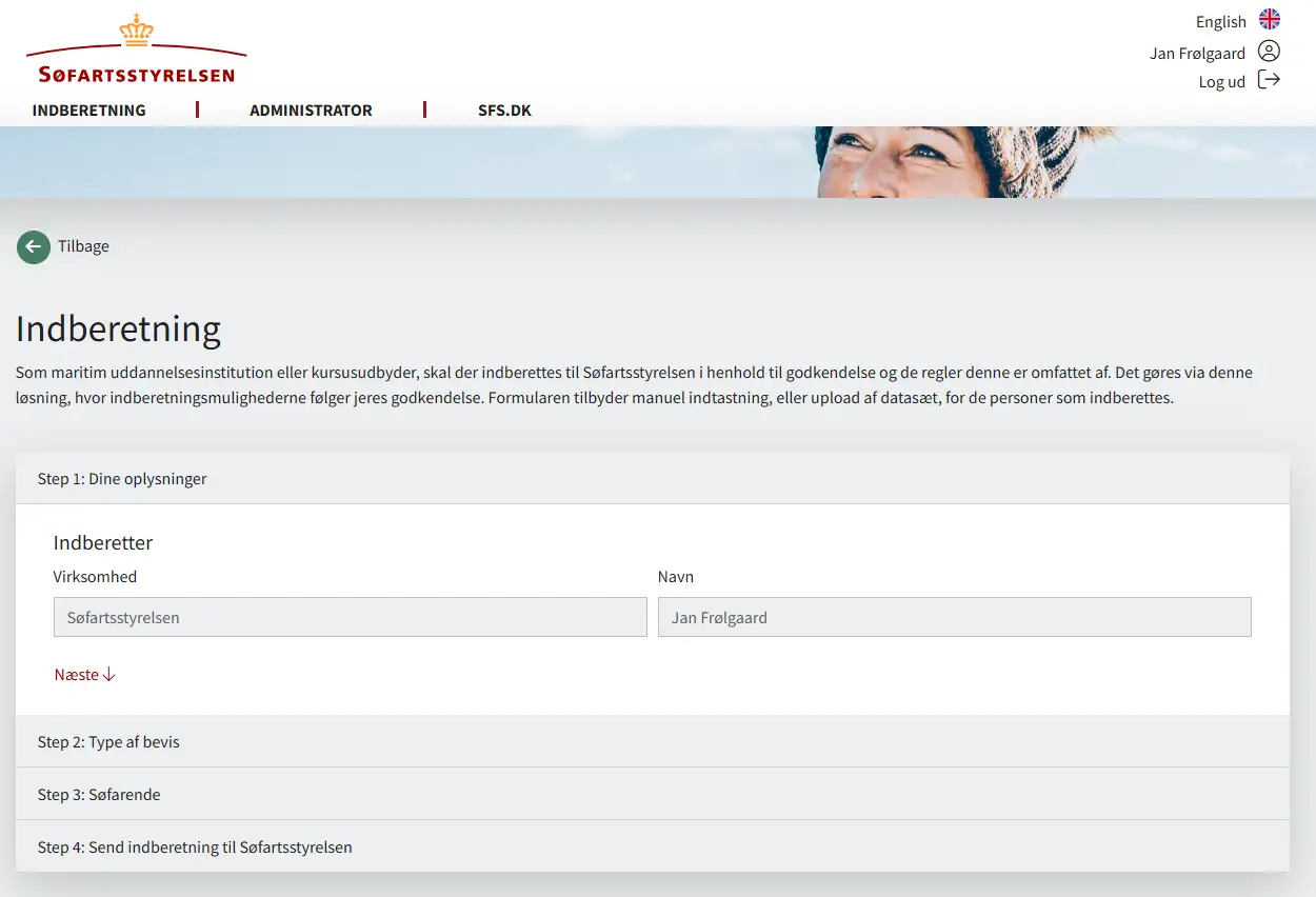 Følg derefter den trinvise vejledning i indberetningsløsningen