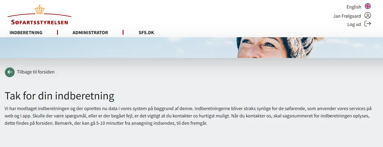 Du kan med fordel notere det sagsnummer, du får for indberetningen, som ses på forsiden af selvbetjeningsløsningen, i dit journalsystem for undersøgelsen, i den søfarendes journal, for senere henvendelser vedrørende undersøgelsen.
